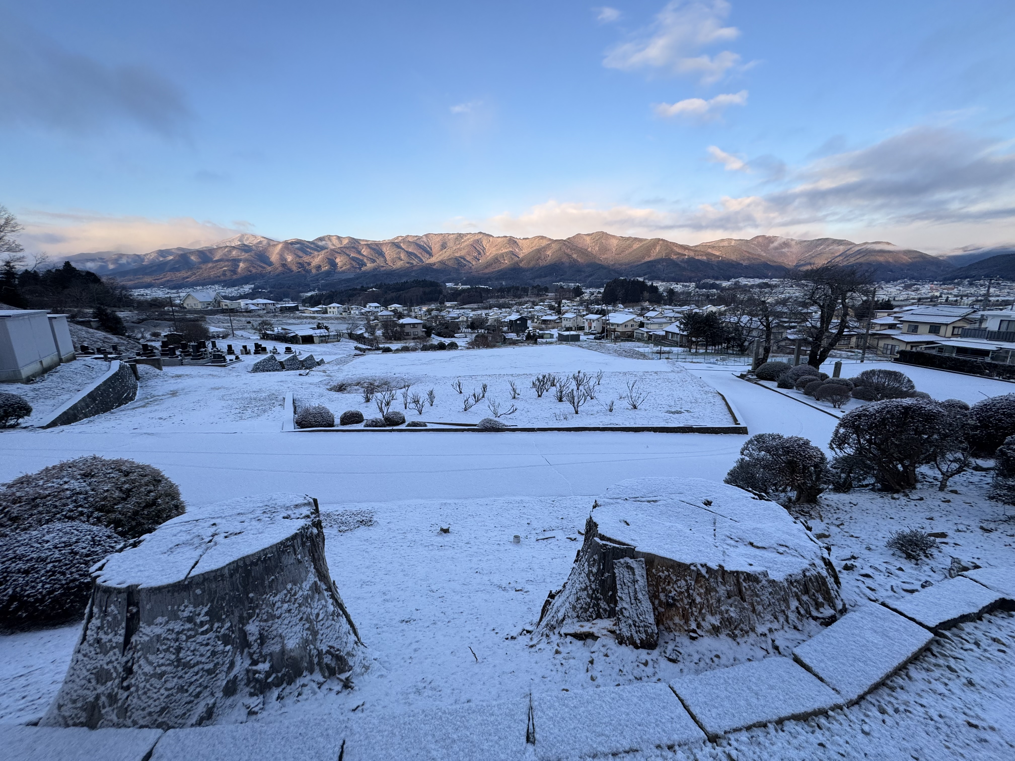 冬景色 明けましておめでとうございます。本年もどうぞよろしくお願い申し上げます 大雪警報が出た2日、「3日の朝は雪かきか?」と心配しましたが、長野県北部及び山沿い地域が大雪で、上伊那周辺地域平地はうっすらと雪化粧をしたくらいで一安心でした。しかし朝の最低気温は-7度でこの冬一番の寒さではと思います。写真の通り西山に雪が全くないところを見ると風で待ってきた雪がうっすらとという状況です。大晦日元旦と賑やかな風景から静寂な日を迎えた3日目の朝でした。