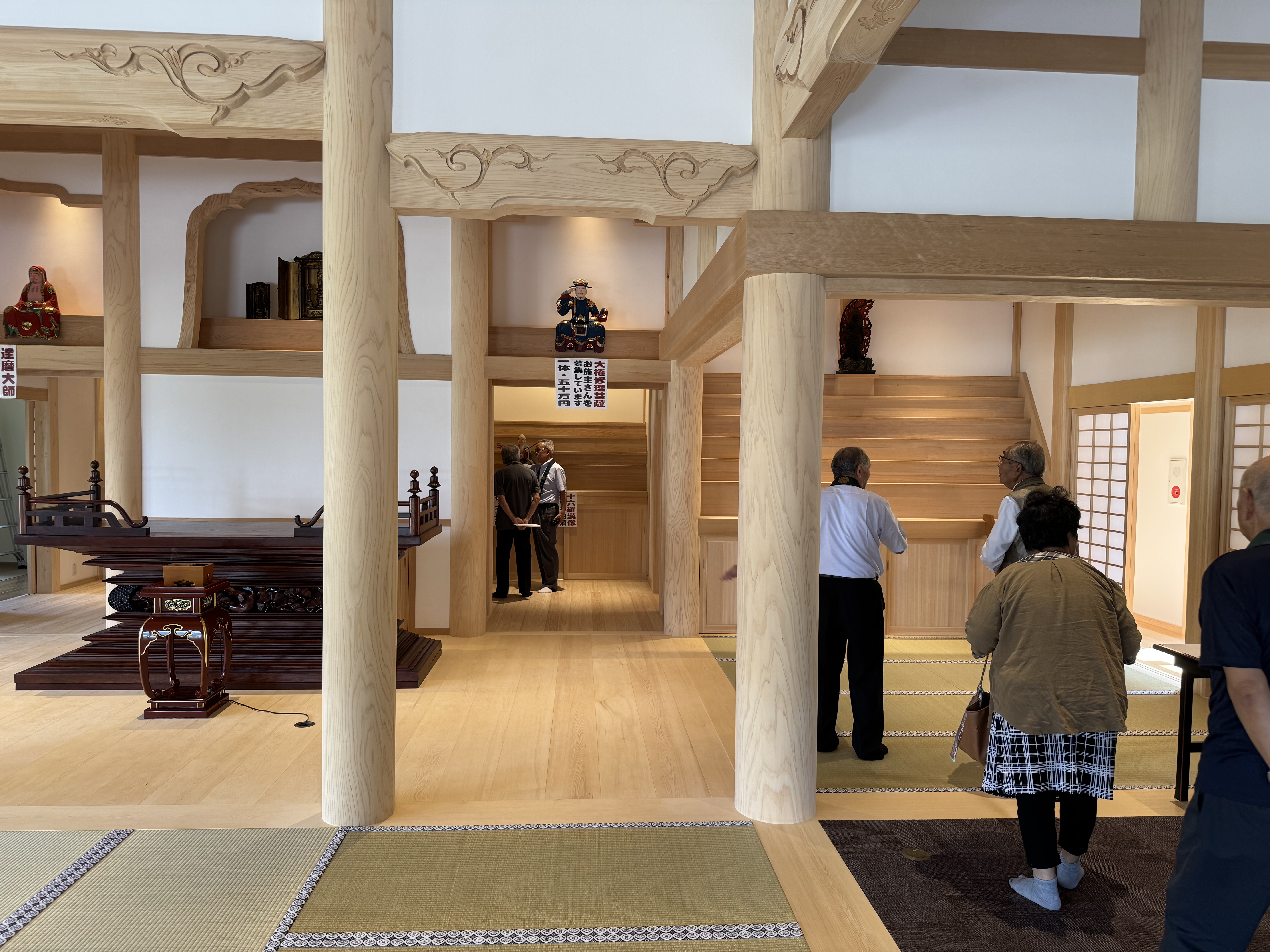 13日~15日迄の3日間本堂完成見学会を実施いたしました。天候にはあまり恵まれせんでしたが、それでも200余名の方々がいらっしゃいました。前の本堂との違いにびっくり。広さはすこし狭くはなりましたが、天井を高くし、広く見えるよう工夫をしました。世の中が大変な時期(コロナ禍・物価高)に始まった工事ですが、檀信徒皆様の篤い思いに深く感謝申し上げます。明日から本堂への引越作業を始めます。20日から本堂での法事がありますので、間に合うよう頑張らねば!!!